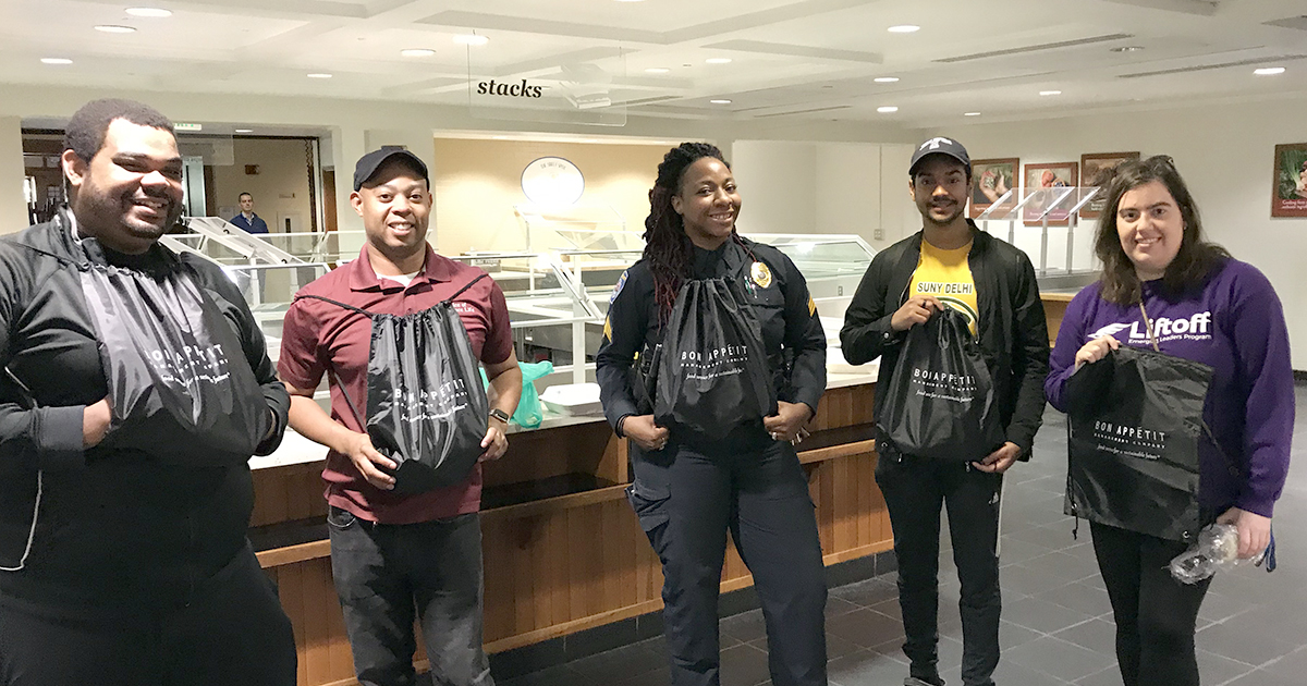In return, David, Sous Chefs Morgan Warren and William Mohica, and Utility Worker James Sewell put together a little farewell gift for all the students — a Bon Appétit cup full of candy and a Bon Appétit bag to take with them on their next adventure.