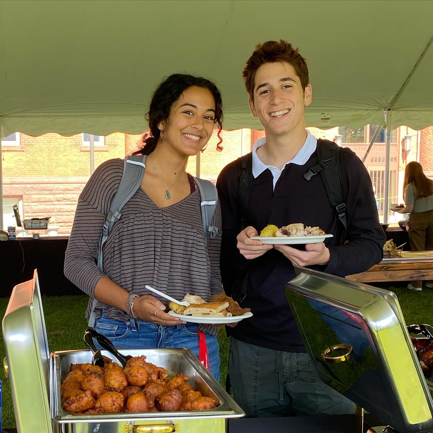 The Bon Appétit at Roger Williams team rolled out the red carpet for students, showcasing the bounty of Rhode Island’s coastal region. Upon arriving in the dining hall, students were met with an impressive array of local options, from fresh-pressed apple cider, to all-local charcuterie boards and desserts. The team dazzled students, faculty, and staff with a full raw bar that showcased local clams, oysters, and ceviche.