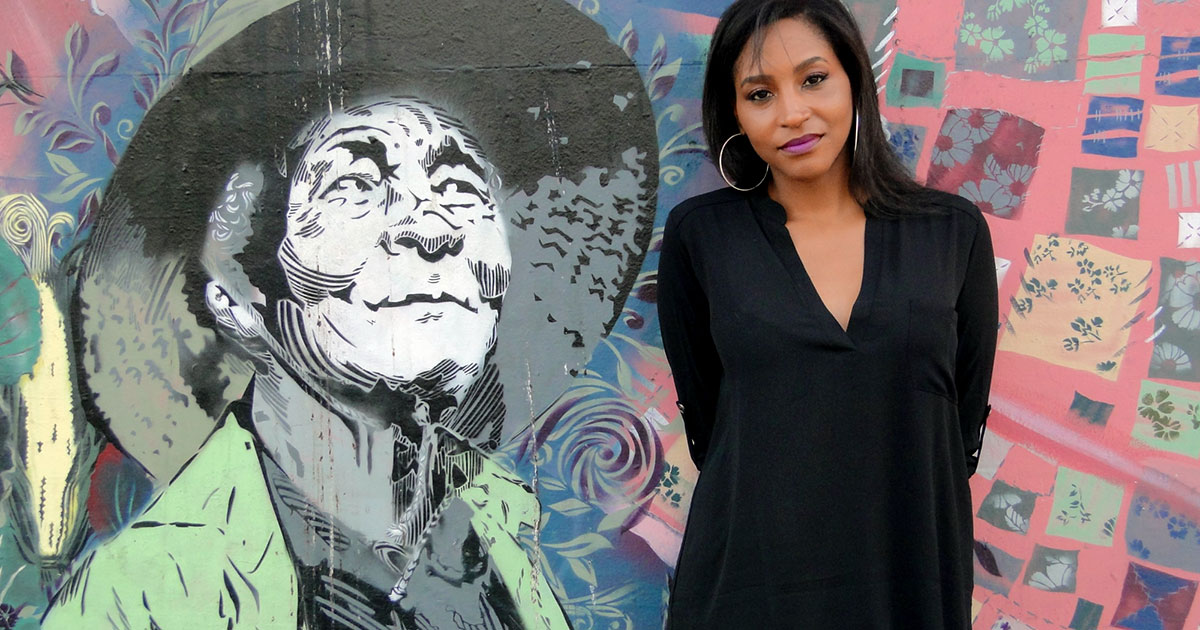 Restauranteur Nikki Cooper in front of one of the Two Jack’s Nik’s Place murals | Photo courtesy Nikki Cooper